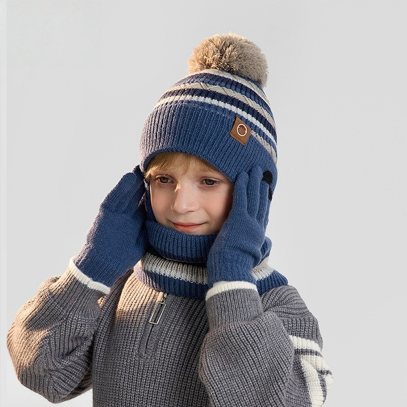 Kids' Knitted Three-Piece Set with Pom-Pom