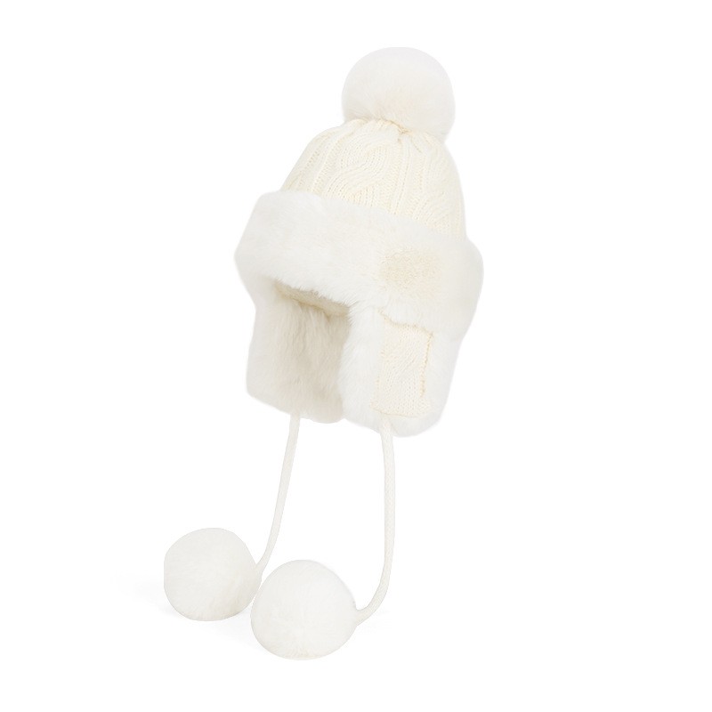 Plush Earflap Beanie with Pom Pom