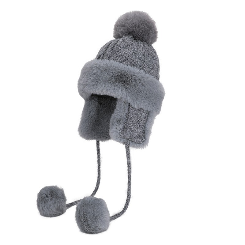Plush Earflap Beanie with Pom Pom
